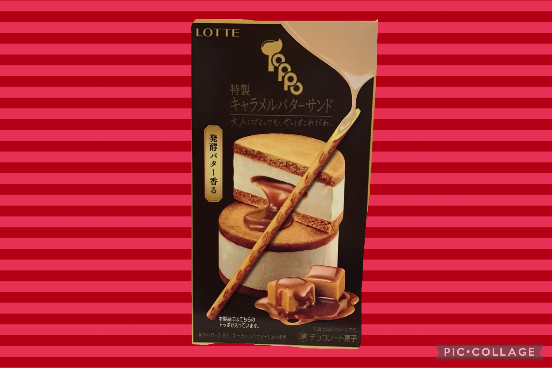 The caramel and rich taste of fermented butter in chocolate is covered by the pretzel stick with the aroma of fermented butter. Enjoy the taste of butter sandwich with the sweetness & bitterness of caramel!