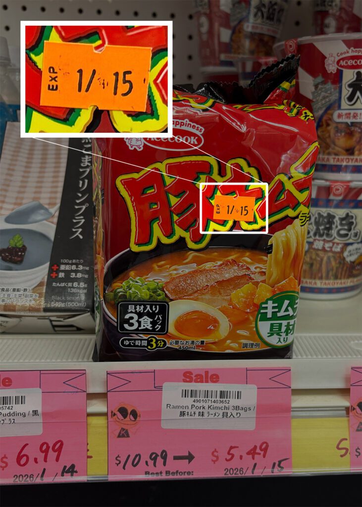 At Konbiniya Japan Centre, we offer select items past their best-before date at reduced prices. These products are safe to enjoy and are clearly marked with a red expired tag and red price sign with the expiry date. It is up to you whether you delight in these delicacies at nearly half price or even less!